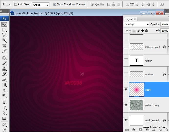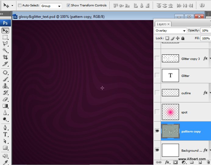 - تطبيق تأثير الشطب والنقش نمط طبقة والتعبئة 0 ٪ من الثانية -- جليتر Copy2 "طبقة".